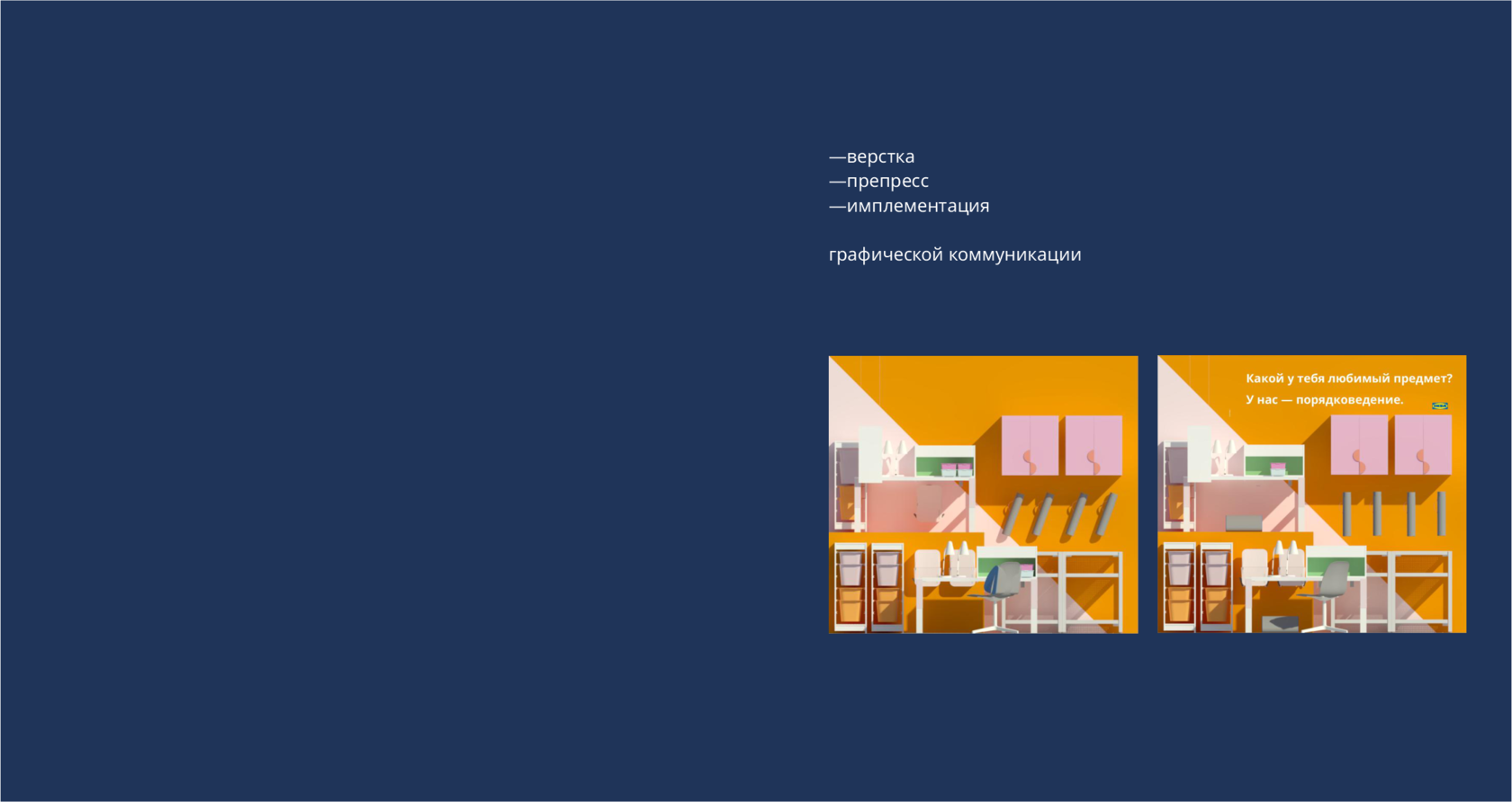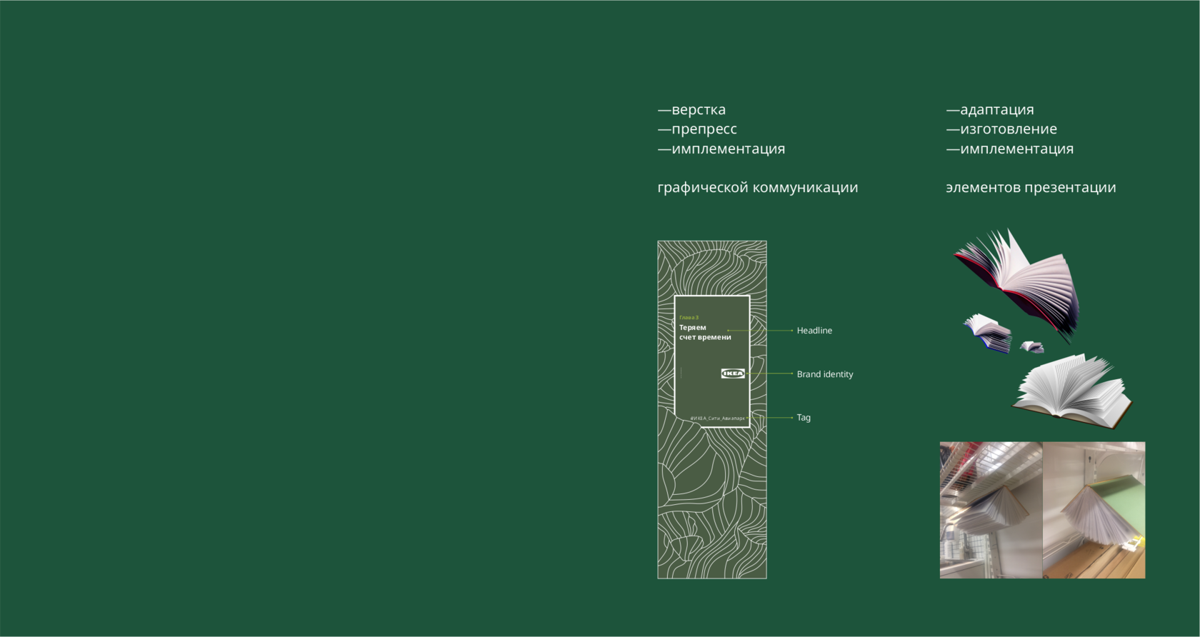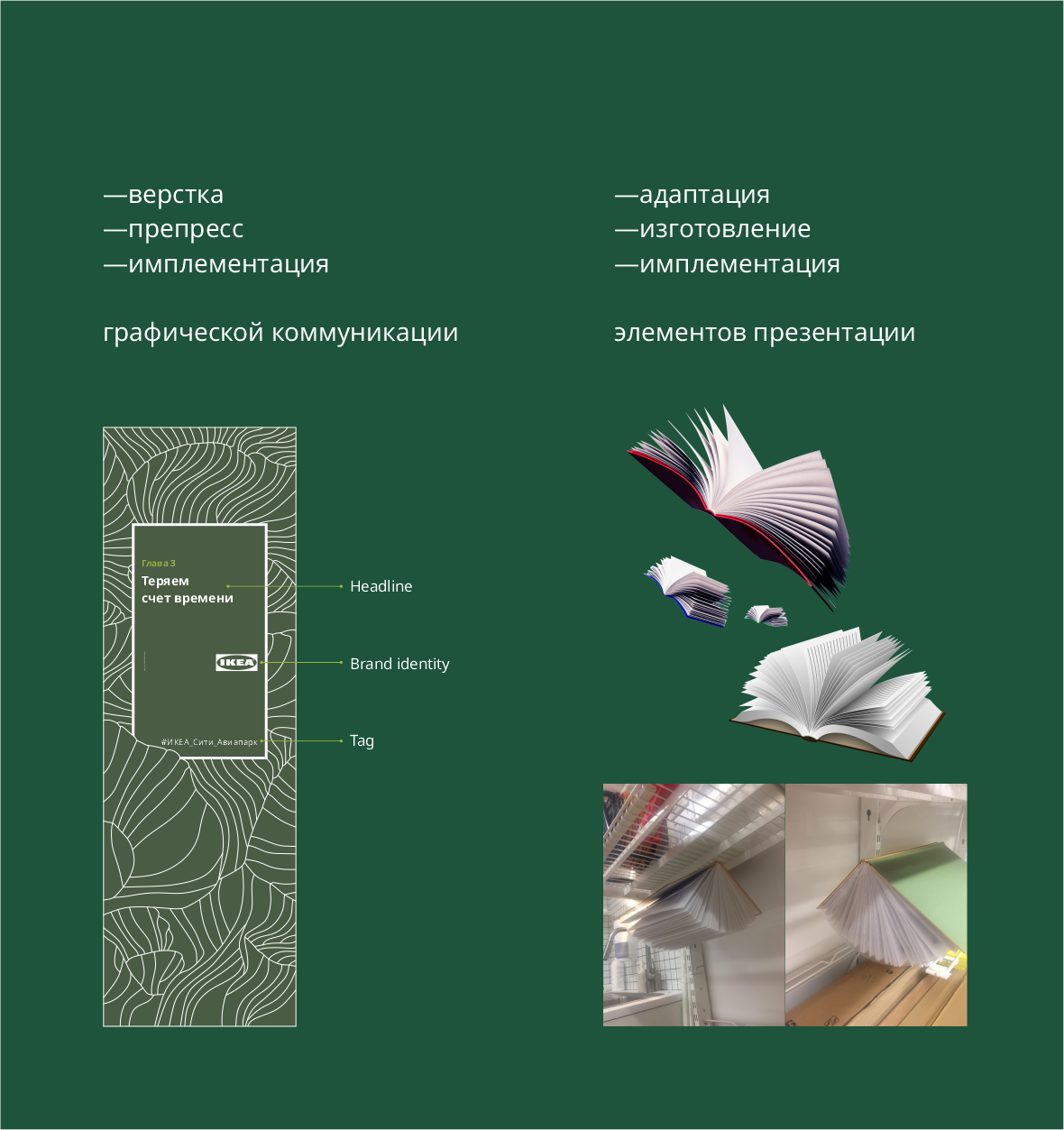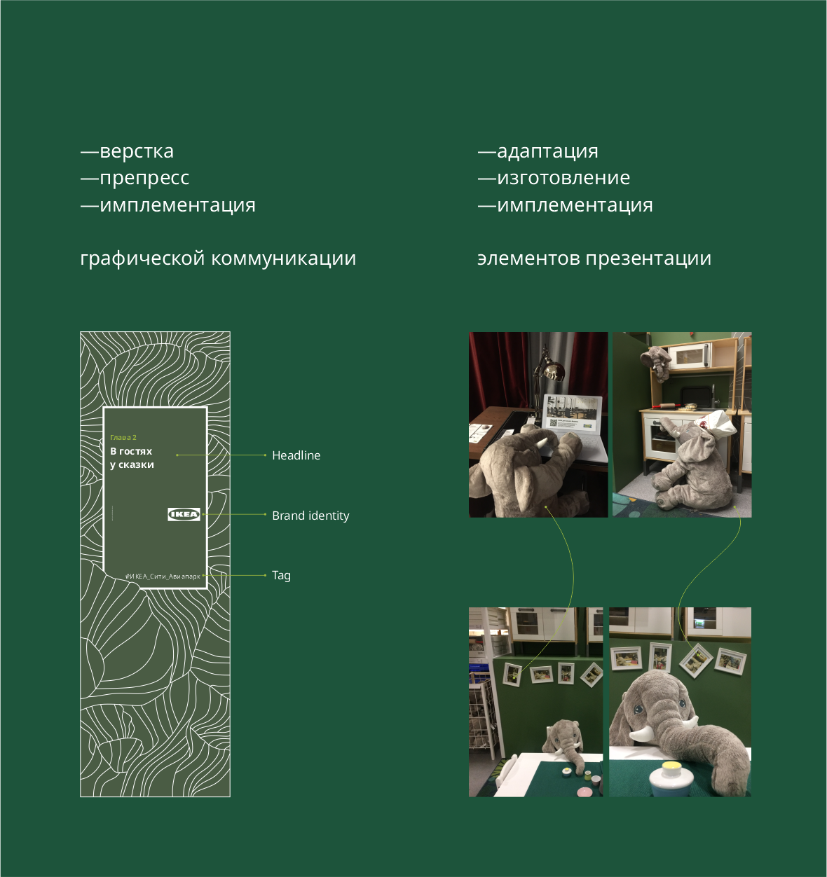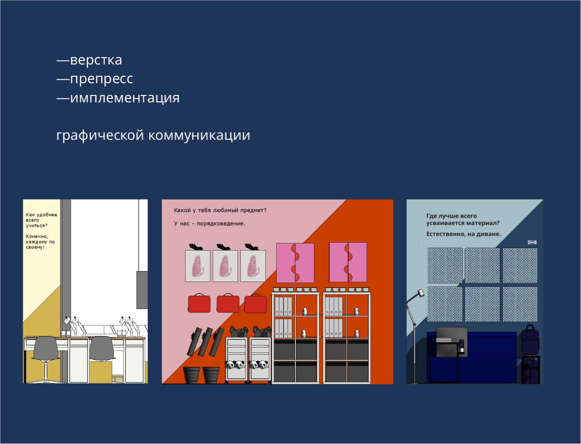 Разработка, изготовление и внедрение графических коммуникаций, работа с подрядчиками, участие в планировании сезонных коллекций, сотрудничество со стейкхолдерами, верстка и препресс макетов, pos-материалы, наружная реклама,презентация ассортимента, работа с пространством магазина.