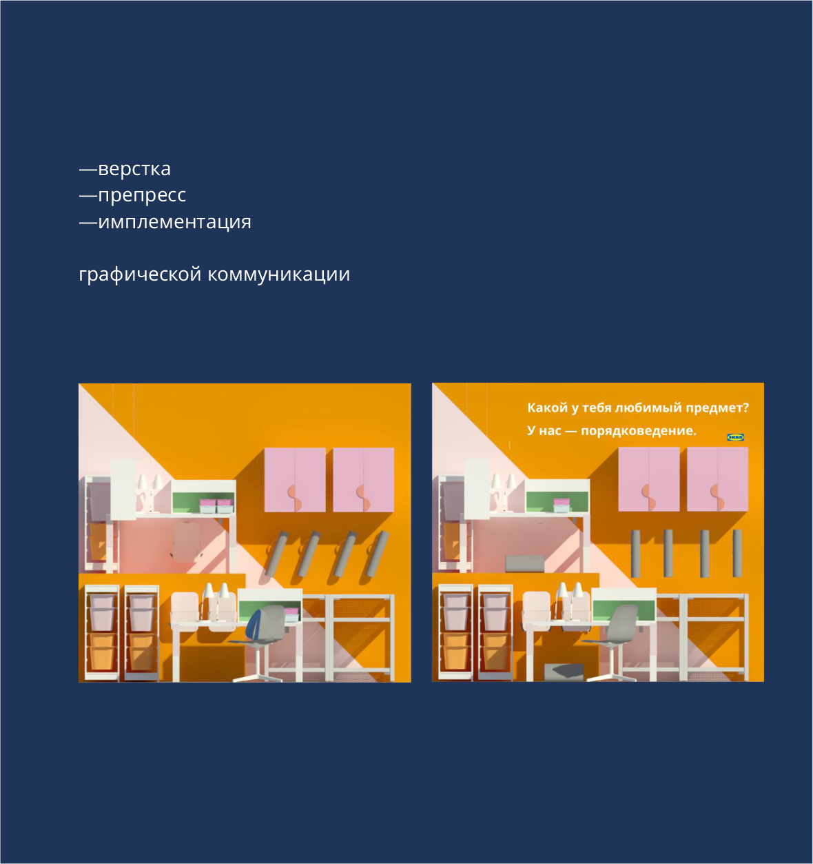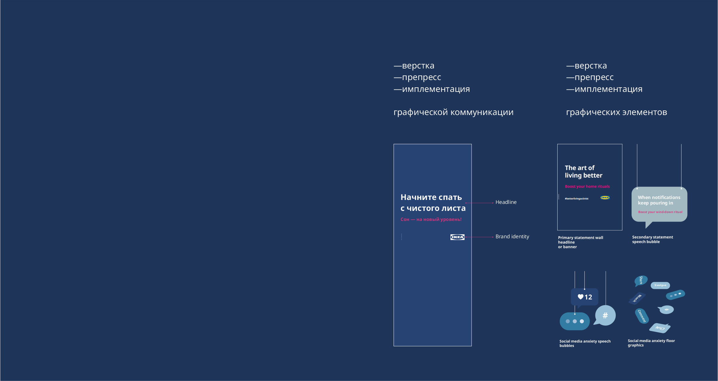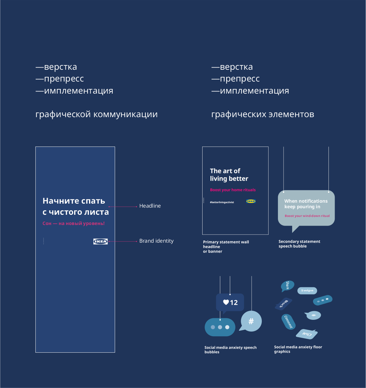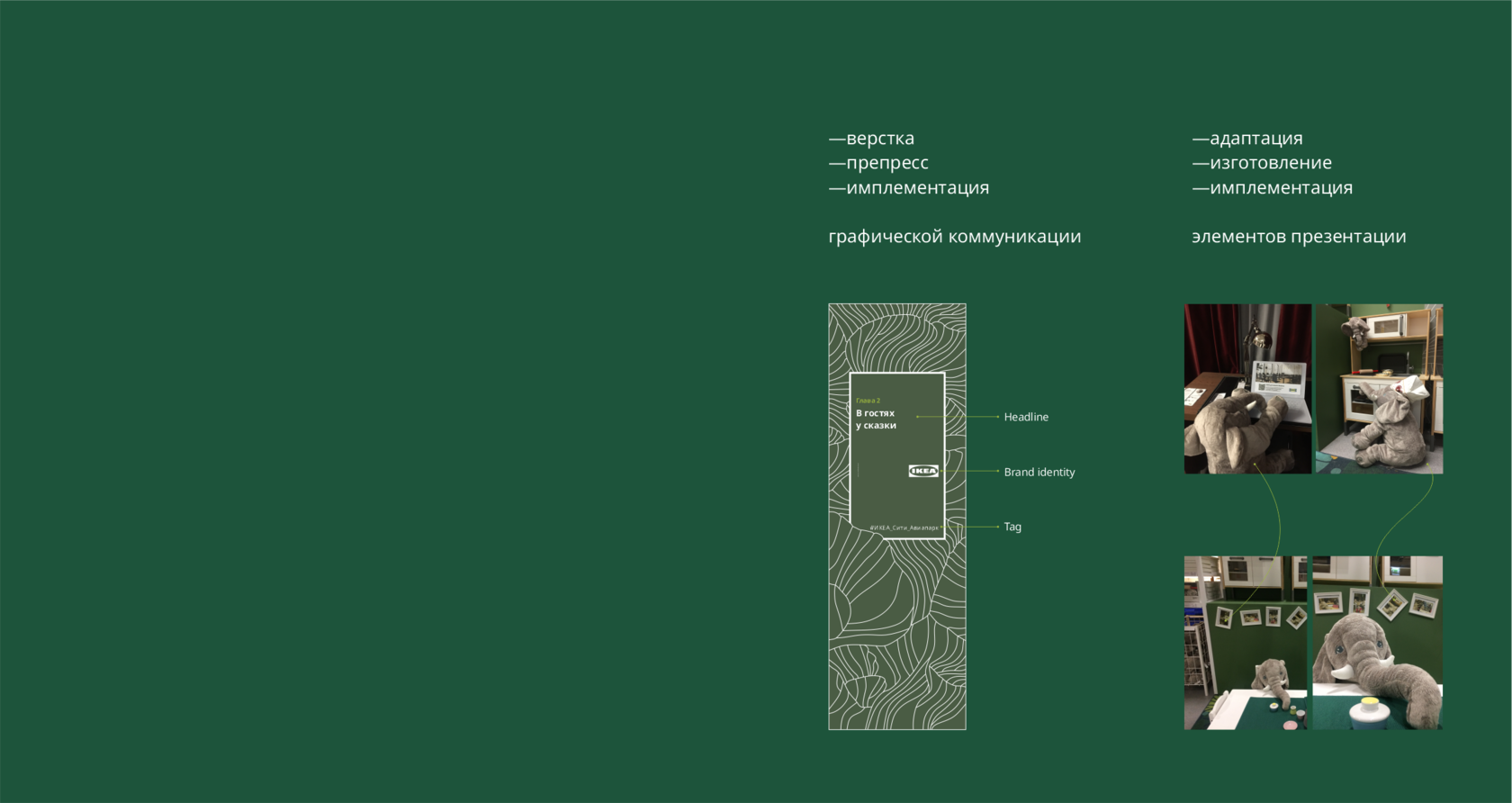 Разработка, изготовление и внедрение графических коммуникаций, работа с подрядчиками, участие в планировании сезонных коллекций, сотрудничество со стейкхолдерами, верстка и препресс макетов, pos-материалы, наружная реклама,презентация ассортимента, работа с пространством магазина.